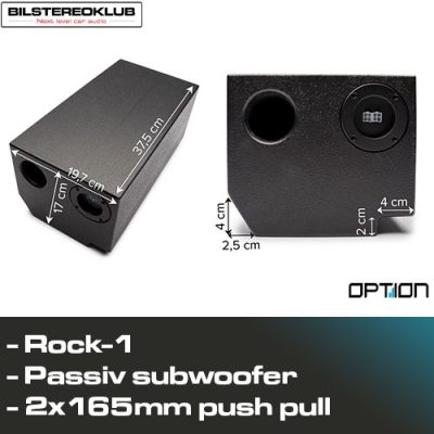 Rock-1 er en bandpass subwoofer med 2 x 16,5 cm chassis i push-pull drift. Subwoofer-chassiset er anbragt i huset og er derfor meget beskyttet. Bassen drives ind i fodrummet via den 6 cm basport.