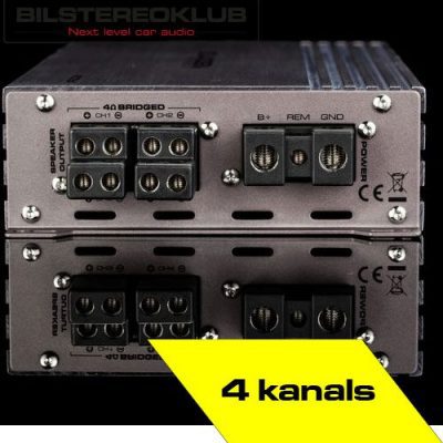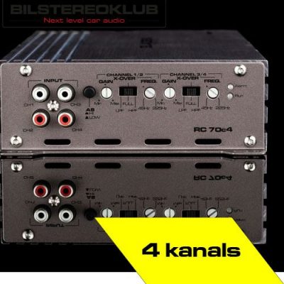 Eksempelvis en mellemserie 4 kanals RS100c4 driver en større 12″ bas på bagkanaler imens den driver mellemstore komponenter på frontkanaler uden at kny og uden at blinke.
