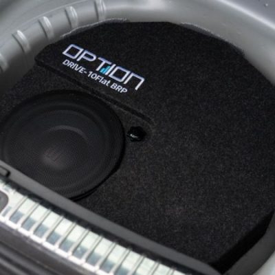 OPTION DRIVE-10Flat BRP D2 er en ekstra flad subwoofer til reservehjulsbrønden, ideel til køretøjer med begrænset højde i hjulbrønden. Subwooferen er udstyret med et basrefleksport, som sikrer en kraftfuld gengivelse af meget lave basfrekvenser. Med en belastningsevne på 300 watt RMS og en dual voice coil på 2 ohm pr. spole leverer denne passive subwoofer en dyb og præcis bas – uden at optage unødvendig plads. Takket være det kompakte design med en diameter på 61 cm og en højde på kun 13 cm er den perfekt til montering i en nødreservehjulsbrønd, hvor den diskret leverer en imponerende lydoplevelse.